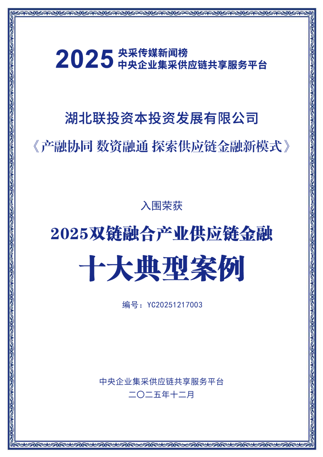 2025年12月17日,備受矚目的“2025 雙鏈融合產(chǎn)業(yè)供應(yīng)鏈金融峰會”在北京圓滿落幕。聯(lián)投資本《產(chǎn)融協(xié)同 數(shù)資融通 探索供應(yīng)鏈金融新模式》成功入選2025雙鏈融合產(chǎn)業(yè)供應(yīng)鏈金融十大典型案例。聯(lián)投資本黨委書記、董事長黃露出席頒獎儀式,副總經(jīng)理胡盼娣參加現(xiàn)場專題對話。