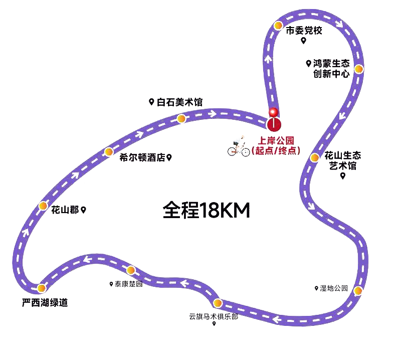 本次騎行路線以花山河上岸公園為起終點,全長約18公里。途經(jīng)鴻蒙生態(tài)創(chuàng)新中心,騎友們感受到的是科技與創(chuàng)新賦予城市的澎湃動能;在花山生態(tài)藝術(shù)館附近,建筑的藝術(shù)感與環(huán)境的靜謐相得益彰;進入嚴西湖綠道段,湖風拂面,水鳥翩躚,開闊的湖景則是對湖北聯(lián)投堅持生態(tài)優(yōu)先、綠色發(fā)展,累計完成超千億投資進行生態(tài)修復(fù)與綠色建設(shè)的最佳注解。這條路線,讓參與者在有氧運動中,深度閱讀了花山作為“新型城鎮(zhèn)化湖北樣本”的規(guī)劃之美、產(chǎn)業(yè)之新與生態(tài)之優(yōu)。